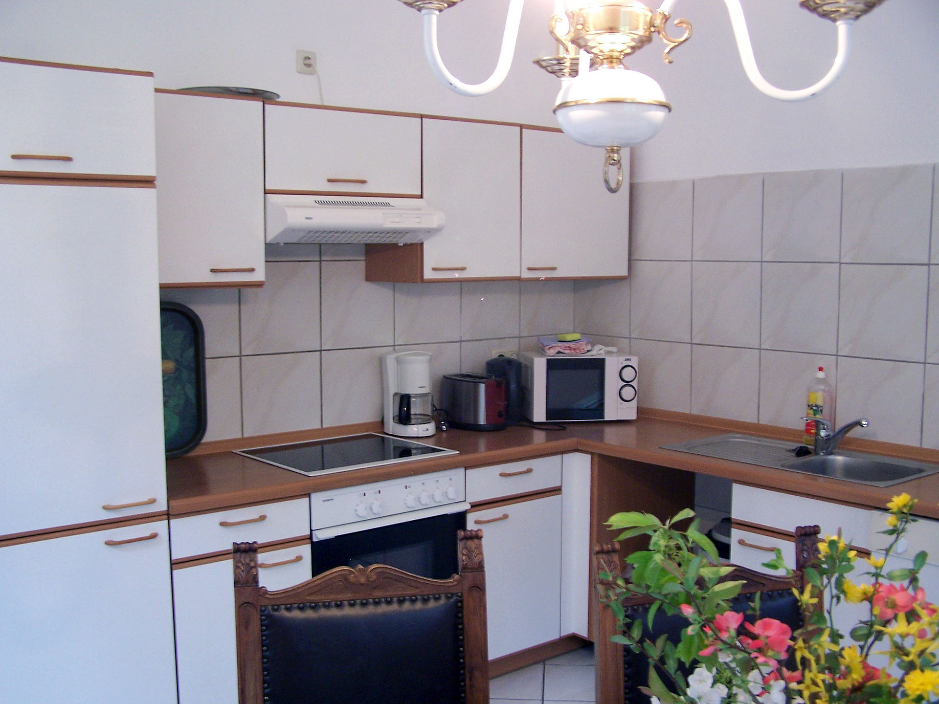 Das Ferienhaus (ca. 85 m2) umfasst Erd- und Obergeschoss, hat einen eigenen eingezäunten Garten und eine Terrasse mit Gartenmöbeln (25 qm², nach Süden). Im Erdgeschoss befinden sich das komfortable Wohnzimmer mit einem Kamin und Sitzgruppe mit Sat TV, CD- und DVD Player. Die separate Küche ist komplett mit Geschirrspüler, Herd/Backofen, Kühl- und Gefrierschrankkombination, Mikrowelle und einem großen Esstisch ausgestattet.