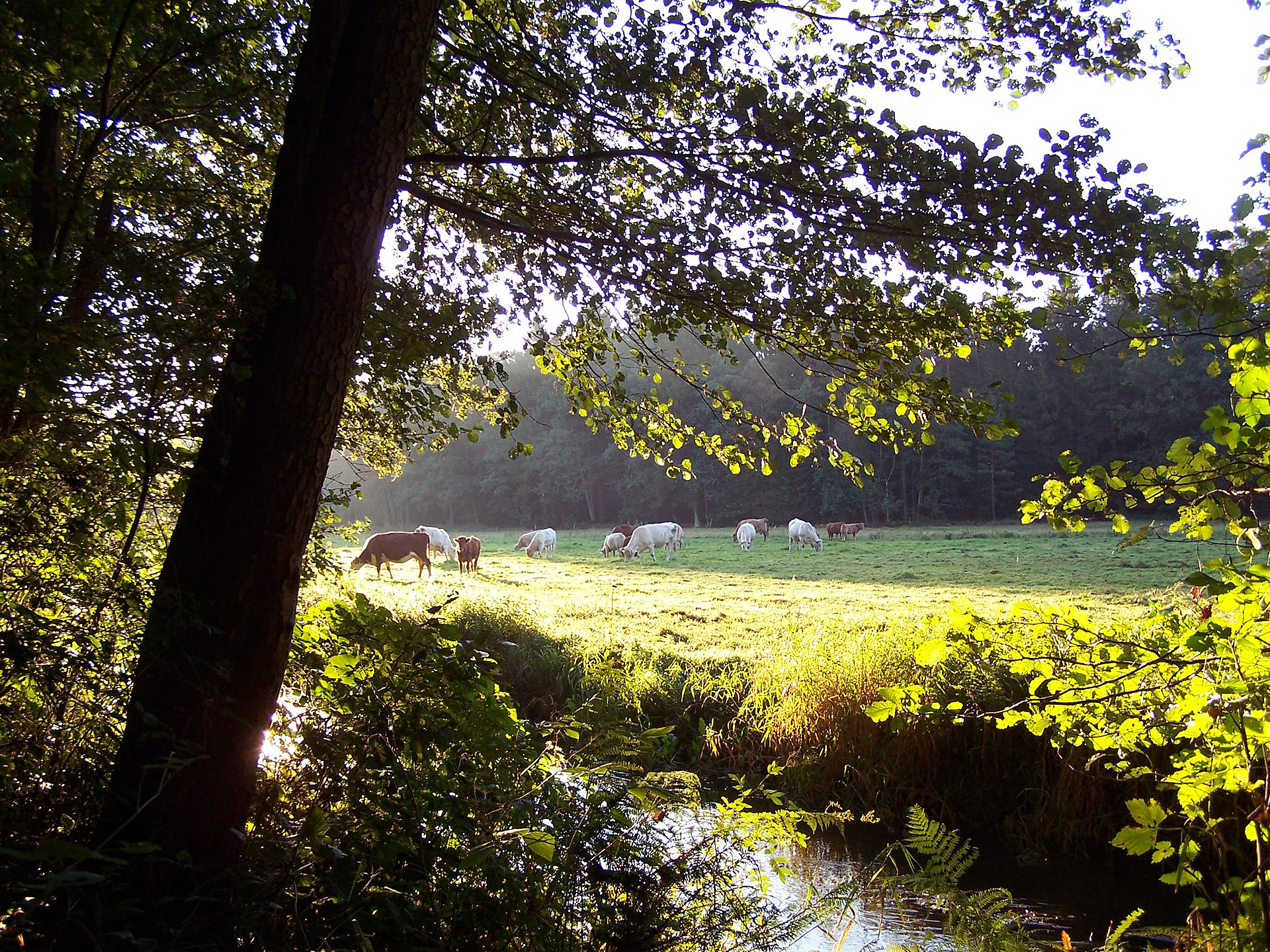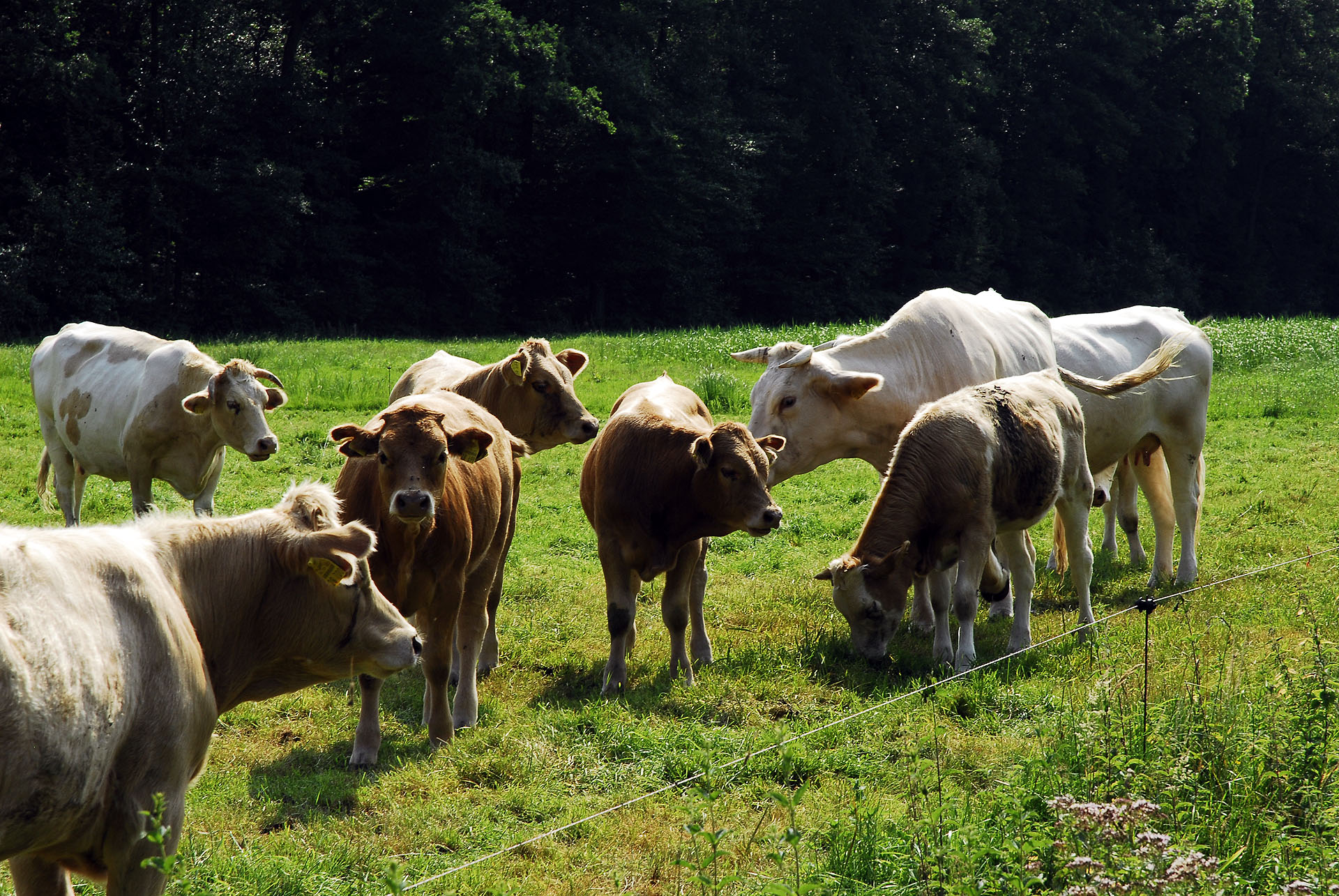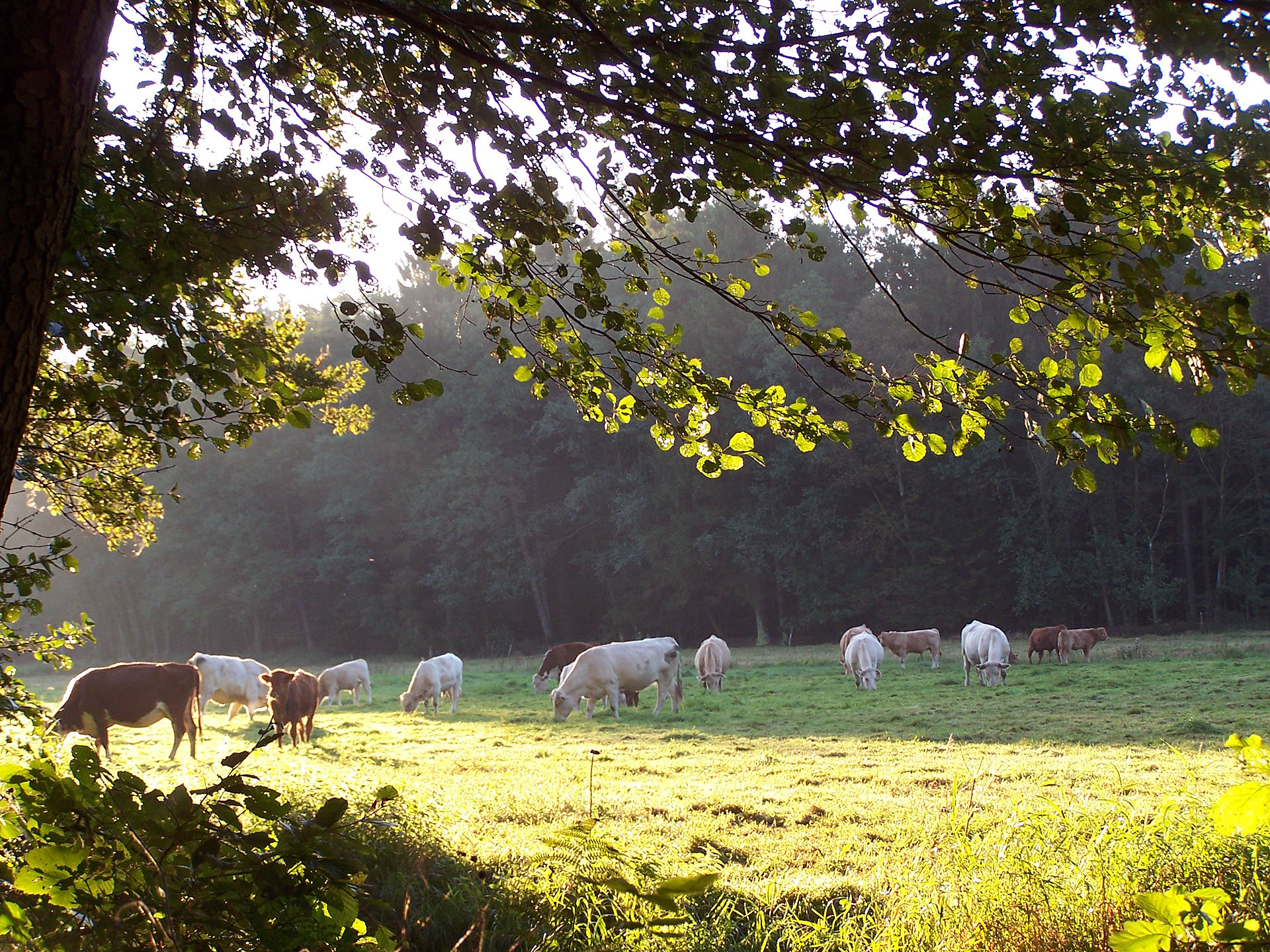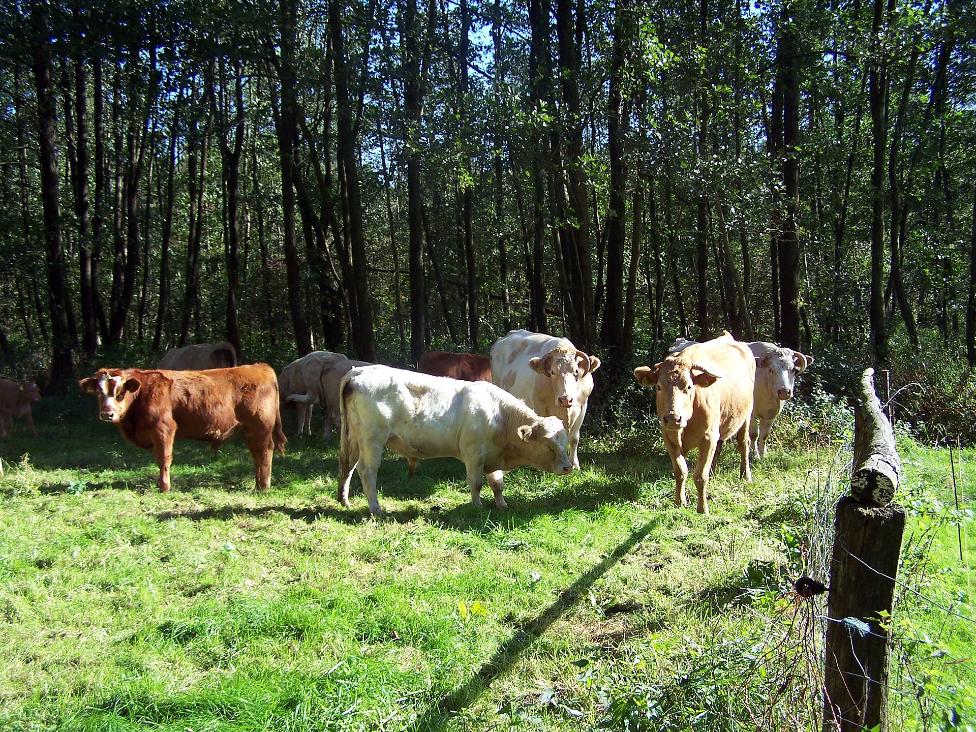 Wir haben eine kleine Mutterkuhherde mit ihren Kälbern (insgesamt je nach Jahreszeit 6-11 Tiere). Den Sommer verbringen sie auf den saftigen Lehrdewiesen. Wenn die Herde von Zeit zu Zeit auf eine neue Wiese getrieben wird, unterstützen uns unsere Gäste meist tatkräftig. Über Winter wird die kleine Herde im Laufstall mit ständigem Zugang zu Futter aufgestallt. Sobald alle Kälber geboren sind, meist Anfang Juni, darf die Herde wieder auf die Weide. Im Sommer läuft für ca. 2 Monate ein Bulle mit. Heu und Silage für unsere Tiere bringen wir selbst ein.